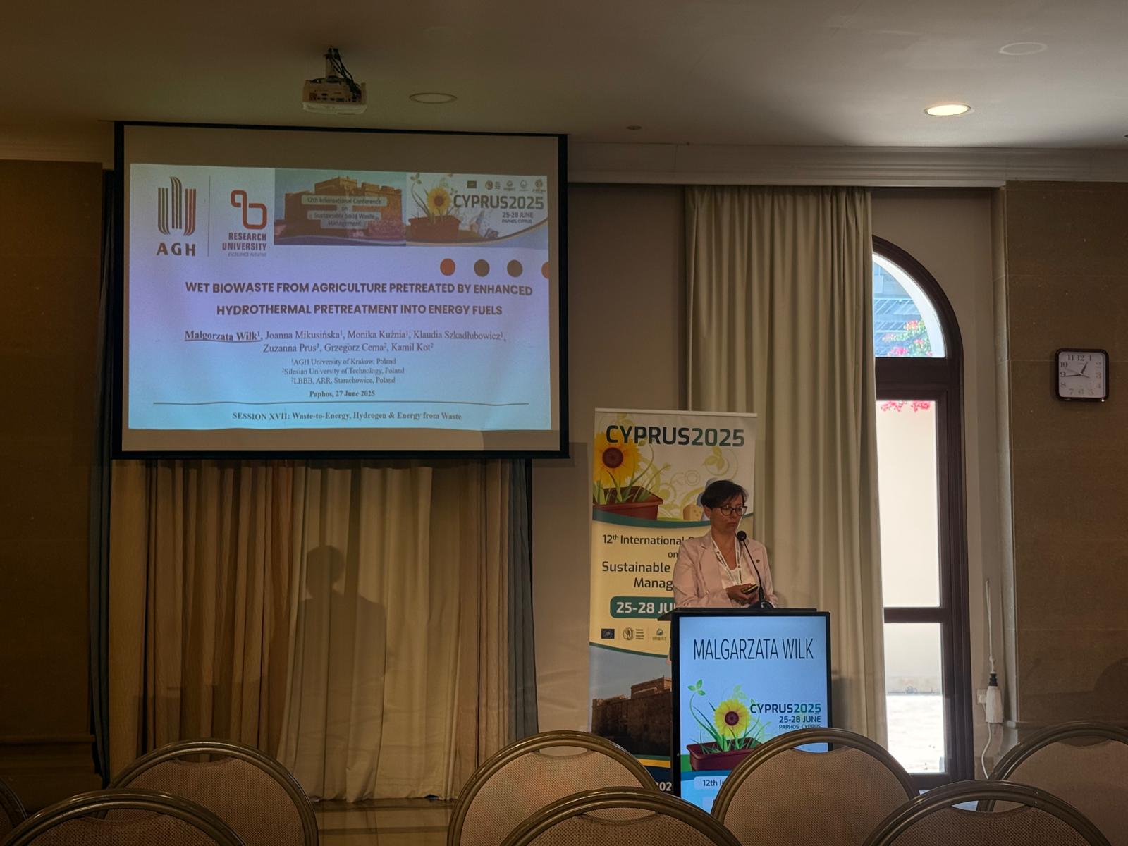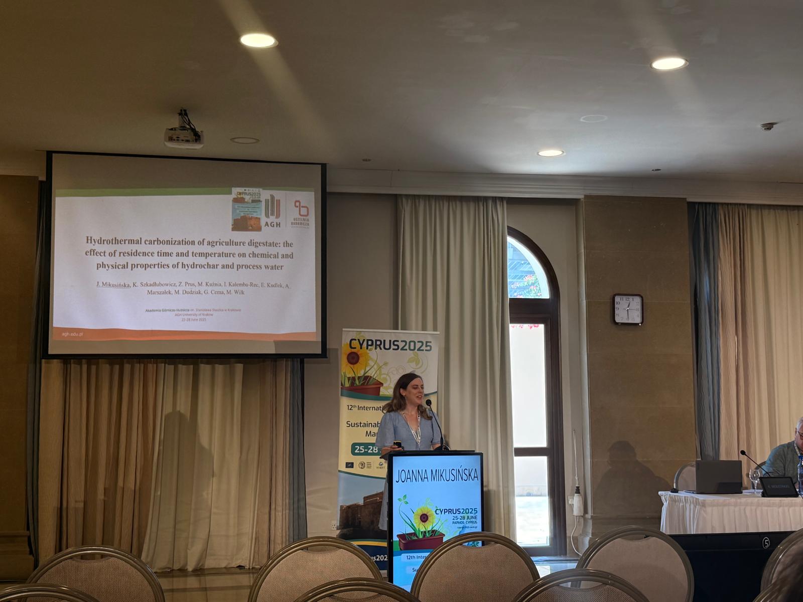 Podczas 12. International Conference on Sustainable Solid Waste Management (25-28.06.2025, Paphos, Cypr) pracownicy naszej Katedry zaprezentowali dwa wystąpienia dotyczące hydrotermalnego przetwarzania odpadów rolniczych i ich wykorzystania w produkcji paliw energetycznych: